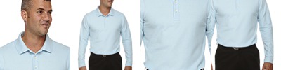 6.1 oz., 100% combed cotton pique with EZCool wicking technology; no-pill, no-fade, no-shrink, no-curl collar, no-wrinkle performance; Active fit; Three-button placket; Open cuffs;