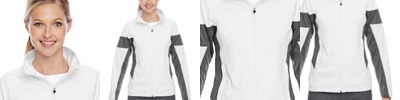 7.5 oz., 100% polyester interlock double knit; Peached finish on interior for added comfort; Moisture wicking; inside storm placket with chin guard; center front contrast reverse coil zipper with semi-autolock rubber pull tab; contrast blocking on side panels, under sleeve and shoulders; zippered front welt pockets; double-needle stitching at hem; complete the look with the TT44W, Ladies' Elite Performance Pant;