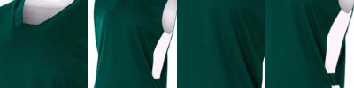 100% polyester, 4 oz. per square yard; Contains moisture wicking, stain release, and is odor resistant; Contrast high visibility panels with and open bottom for easy printing on both sides of uniform; Reversible;