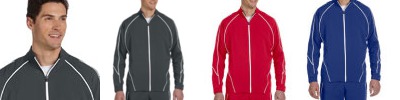 65% polyester, 35% cotton shell; Breathable mesh lining; Yoke vents allow for air movement and easy embroidery access; Elastic cuffs and waist; Self-locking outside pockets; Inside zip pocket; Windguard-covered front-zipper;