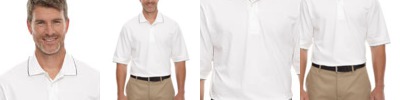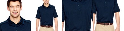 100% polyester mlange jersey, 4.1 oz./yd2/140 gsm; Moisture wicking and antimicrobial performance; self-fabric collar with collar stand; self-fabric piping at front and back shoulders; heat seal label;