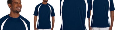 100% polyester; 40 UPF on White; 30 UPF on other colors; Wicks moisture and keeps the body dry; Sideseamed; comfortable fit; Self-fabric collar; feminine V-neck and front seams; Double needle stitching on sleeve and bottom hem; Anti-microbial treatment prevents odors from perspiration;