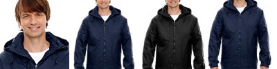 3.5 oz., 100% polyester fully seam-sealed, two-layer waterproof and breathable s; 3.2 oz, Dyed-to-match 100% polyester micro-mesh lining throughout; 6,000 mm waterproof rating and 6,000 g breathability; rollaway three-piece hood with 1¼" rain bill; waterproof reverse coil zipper at center front and pockets with semi-autolock rubber pull tabs; black contrast side panels; reflective tape at right-chest and front pockets; hook and loop hem closures at cuffs; drop-tail hem and elastic shockcord protects from the elements;