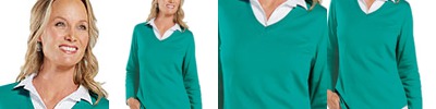 4.4 oz., 100% two-tone polyester; moisture-wicking performance; contrast coverstitch details ; structured collar stand with integrated collar stays; back yoke; adjustable cuffs; front and back princess seams;
