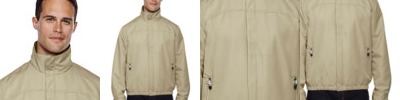 full-zip with translucent teeth; zippered front pockets; adjustable cuffs with snap closures; inside zippered security pocket; concealed front placket; elasticized hem;