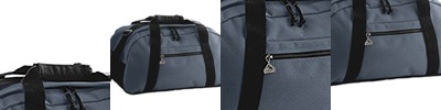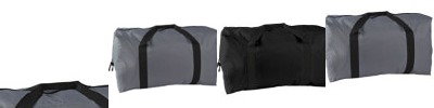 600-denier polyester; webbing handles with hook and loop fastener between handles; large main compartment; moded rubber zipper cords; 28"W x 16"H x 14"D;