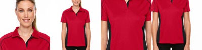 100% polyester snag protection plus tricot, 5 oz./yd2/170 gsm; Moisture wicking, antimicrobial and UV protection performance; matching flat knit collar; contrast colour neck tape; contrast inner placket; contrast side inserts; contrast piping at front and back shoulders and sleeves; contrast two-needle decorative stitching;