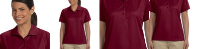 5.9 oz., 100% poly waffle; moisture-wicking; anti-microbial performance ; matching rib neck trim; heat-sealed label ; metal buttons at placket;