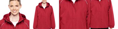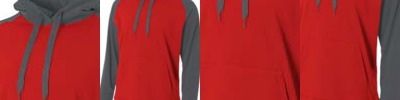 - Contrast colored hood lining, drawcords and accent stitching with unique drawcord treatment