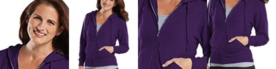 100% poly jersey w/100% poly microfleece, 7.4 oz./yd2/252 gsm; inside storm placket with brushed tricot chin guard; front pockets with contrast reverse coil zippers; contrast coverstitch details on front, back body and sleeves; audio port access through inside left pocket; sleeve inserts and zipper garages utilize fleece side of fabric; adjustable shockcord at hem; right chest pocket with invisible zipper;